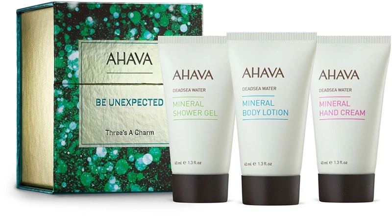 Faites-vous plaisir ou faites plaisir à vos proches en choisissant un magnifique coffret de cosmétiques AHAVA Be Unexpected Three’s A Charm.