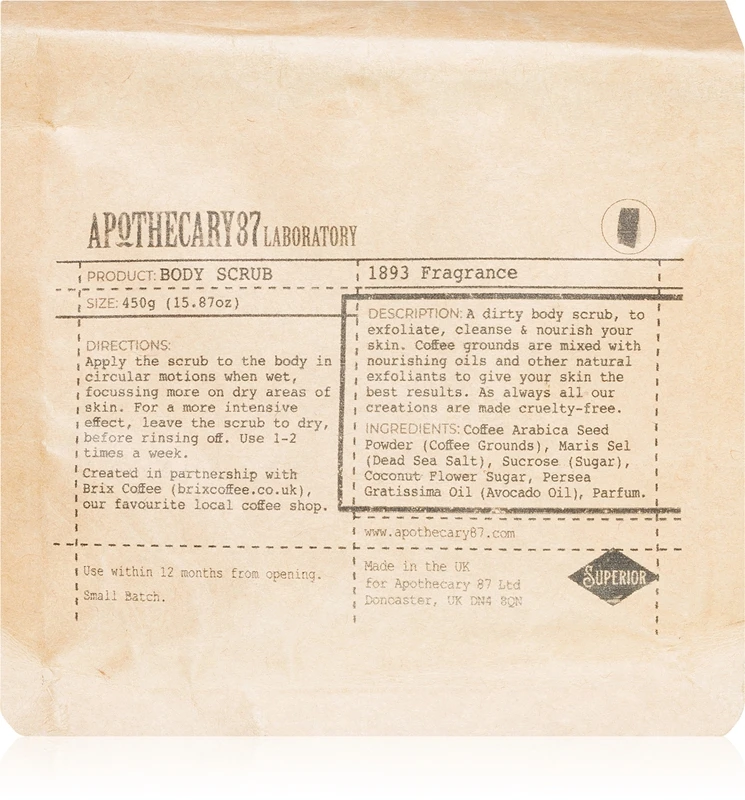 Le gommage corporel Apothecary 87 1893 Body Scrub élimine les cellules mortes de votre peau et lui redonne une douceur parfaite.