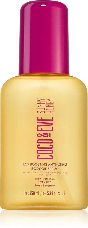 Le produit bronzant protecteur Coco & Eve Sunny Honey Tan Boosting Anti-Aging Body Oil SPF 30 est un soin indispensable pour votre peau lorsque vous vous exposez au soleil.