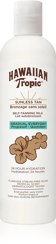 Le lait autobronzant Hawaiian Tropic Self Tanning Everyday Gradual Tan vous garantit une peau semblant caressée par le soleil, mais aussi 24 heures d’hydratation. Il s’absorbe rapidement, ne colle pas, ne laisse pas de traces ou de taches et il garantit une magnifique peau hâlée. Pendant son application, vous serez enchantée par sa senteur tropicale qui vous entraînera vers les îles hawaïennes.