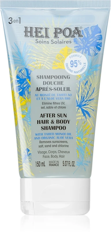 Le shampooing Hei Poa After Sun Monoi & Aloe Vera est spécialement conçu pour le soin des cheveux sollicités par le soleil. Il les lave en douceur et les laisse agréablement doux et brillants.