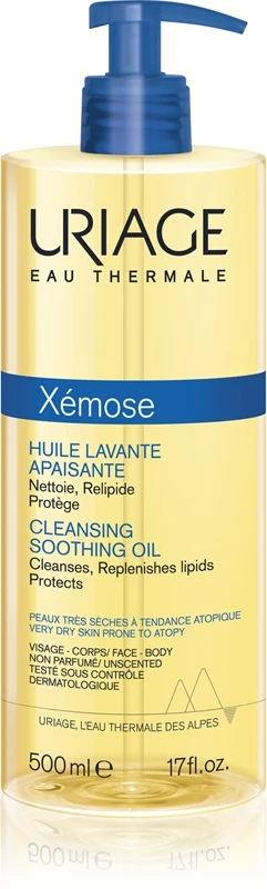 Pour un soin de la peau sèche plus efficace, utilisez l’huile en association avec la crème nourrissante et le gel-crème nettoyant de la gamme Uriage Xémose.